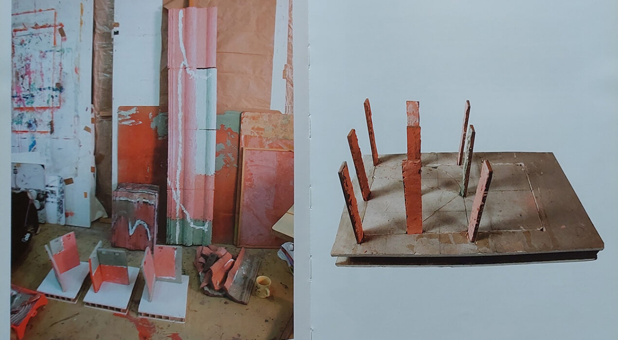 Avant d’intégrer l’École d’art de Cergy, j’ai préparé les concours d’entrée au sein de la Classe d’Approfondissement d’Arts Plastiques du lycée Pablo Picasso à Fontenay-sous-Bois (CAAP), coordonnée par Charles Galissot. Cette année-là, j’ai eu la chance de faire partie des cinq étudiants dont la démarche naissante a été suivie par Agnès Fabre, alors inspectrice pédagogique régionale d’Arts plastiques de l’académie de Créteil. Ce travail de suivi, mené sur quatre mois, a été retranscrit dans le catalogue de l’exposition de la promotion 2002. Cette archive constitue aujourd’hui un précieux témoignage : une photographie de mes premiers tâtonnements artistiques, avant même mon entrée en école d’art. On y perçoit déjà mon attrait pour l’architecture, les matériaux de construction, la maison, les réseaux, la verticalité et l’horizontalité, les strates — autant de thèmes qui continuent de traverser ma pratique.