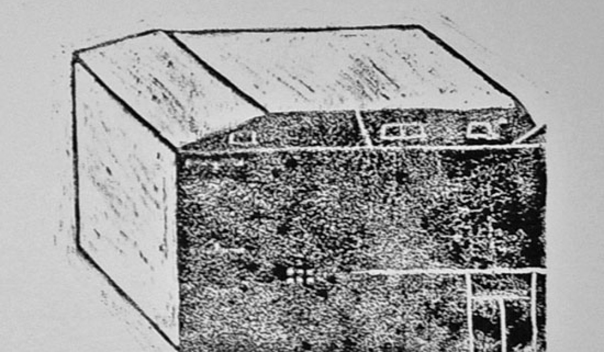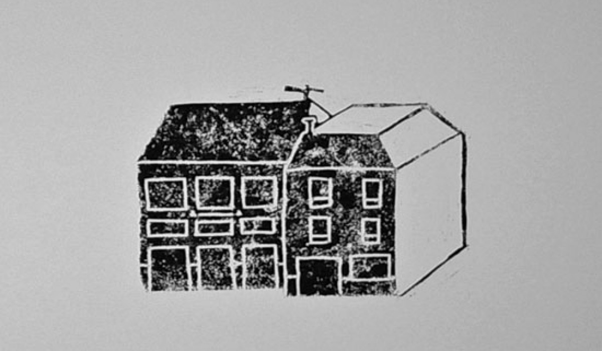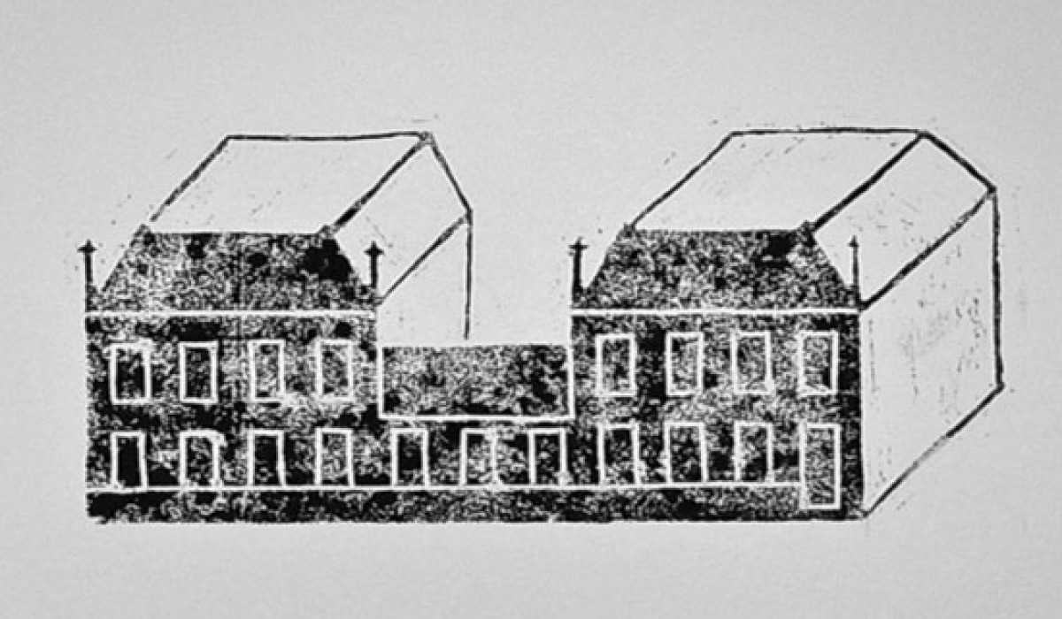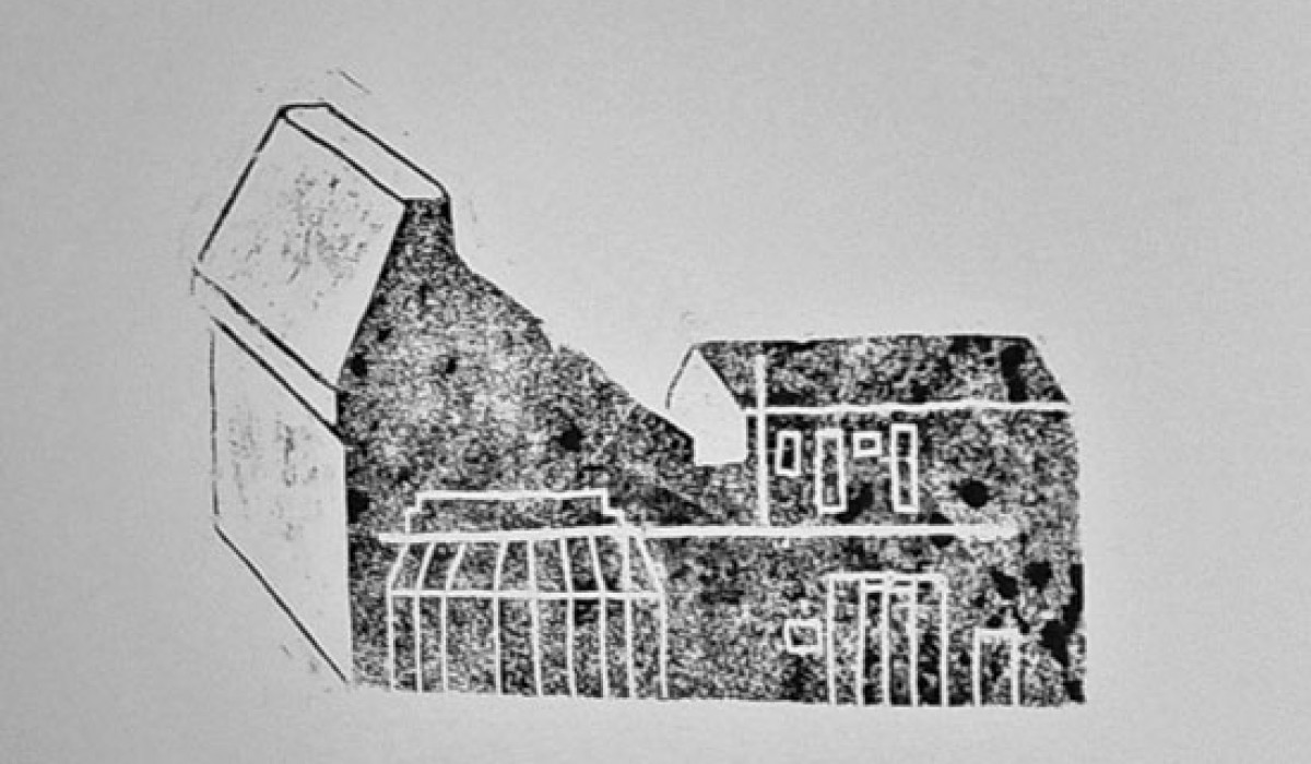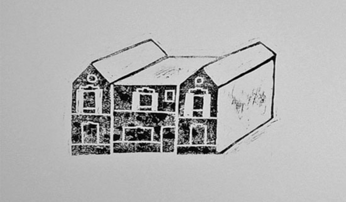 Inventaire 6 Linogravures 45 x 30 cm imprimées sur mur Vue de l’exposition Intramuros à la Graineterie à Houilles (78) 2012 «Les dessins stylisés de cet inventaire représentent des habitations ou édifices Ovillois existant. Face à eux figurent des bâtiments qui ont disparus. A chaque dessin est associé un texte narratif, librement inspiré des témoignages récoltés, de documents d’archives ou d’écrits ayant révélé un souvenir, une remarque, une pensée à propos du lieu dessiné. Comme souvent, Magali Poutoux prend ses distances avec la réalité, se l’approprie avec une expression plastique minimaliste, toujours à la recherche des signes essentiels permettant de faire le lien entre son propre regard et les lieux qui ont inspiré ses productions. La mise en regard de bâtiments disparues, détruits et d’autres encore sur pied vient ici rappeler, au travers des langages textuel et graphique, le caractère mouvant de la ville. Ces deux formes de langages restituent ainsi une mémoire sensible de la ville basée sur un dialogue du bâti et de l’humain ; un bâti qui fait figure de lien entre les habitants et leur territoire.» Elise Receveur