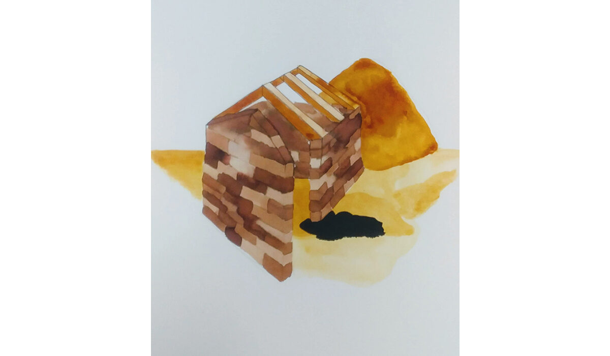 Une traversée des terroirs et territoires Pins maritimes, rougier et paille hachée. Création graphique pour l’agence CoCo architecture impressions à 250 exemplaires 29x15cm 2023 Dessin librement inspiré par la halle de Saint-Selve, le tiers lieu de Golinhac et l’école de Solaure-en-Diois Le tiers-lieu de Golinhac a également donné lieu à un récit architectural sonore, construit à partir de l’enregistrement d’une interview téléphonique entre Pierre Enjalbal, architecte du projet, Alexandre Bénézet, maire du village, et David Vernet, auteur et interviewer.