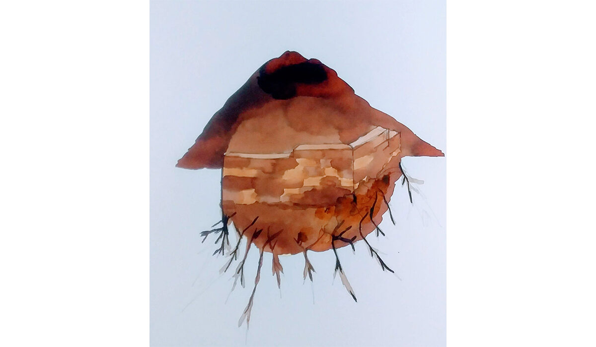 Comme une île, un paysage neuf a pris racine Une année à Construire, à Conjuguer, à Colorer Création originale pour la carte de vœux de l’agence CoCo architecture impressions à 250 exemplaires 21x15cm 2020 Dessin librement inspiré par le siège administratif de Marcillac-Vallon, Le Rock à Panazol, L’agora à Braud-et-Saint-Louis, le centre d’activités et de services d’Asprières et le collège de Champier