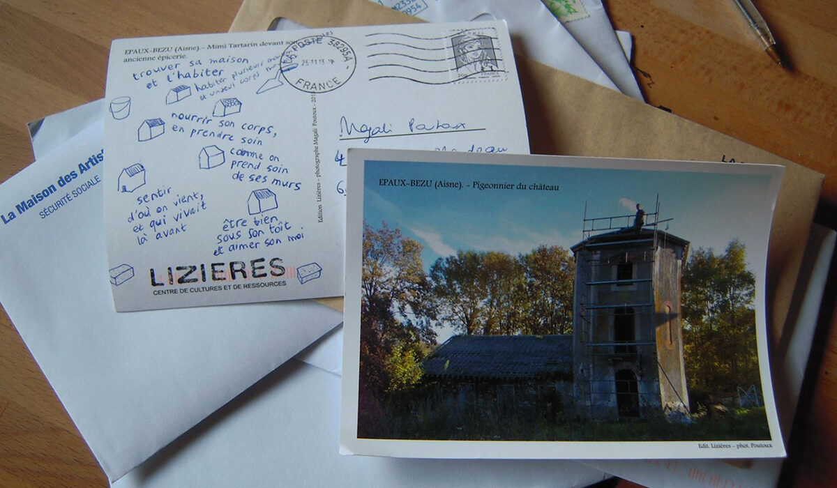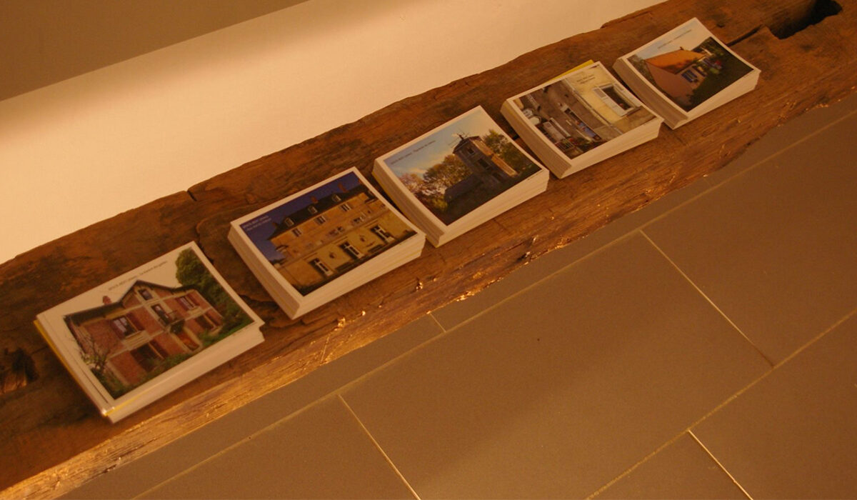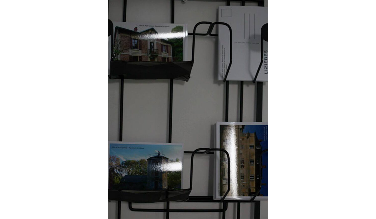 Réalisé dans le cadre de la résidence de création soutenu par la Drac Picardie à Lizières (centre de cultures et de ressources) 2013 Installation à dimension variable composée de : – 4 livres objets bois et papiers – édition de 5 cartes postales – Pliages en pages d’annuaires – 1 pièce sonore extrait en écoute