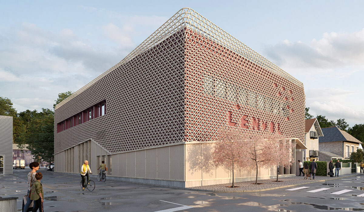 L’envol Conception et suivi de fabrication de la signalétique et de l’identité visuelle de L’envol, tiers-lieu à Brive-la-Gaillarde, pour CoCo architecture. Architecte mandataire : CoCo architecture Maître d’ouvrage : SAS SaralouConception : 2024 — en cours de réalisation Le projet s’inscrit dans le tressage de la façade, dont il vient révéler le lettrage de L’envol par un dessin en creux.Cette forme négative, suggérant le mouvement du vol d’un oiseau, constitue le point de départ de la réflexion. Image : Métis